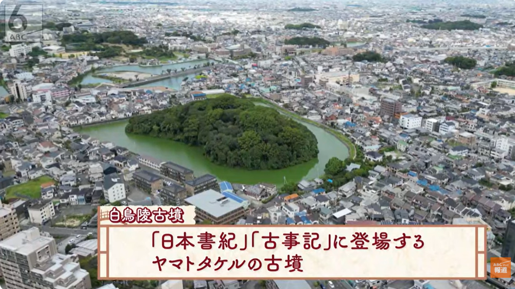 それは、お店の目の前にある大きな古墳。実は店の窓からキレイに見えていたそうで、「しまった、もう一回!」と2人は店内へ。うっかり見過ごすところだったこの「白鳥陵古墳」が、なんとあの「ヤマトタケル」の古墳だとお店の方から聞かされて仰天します。