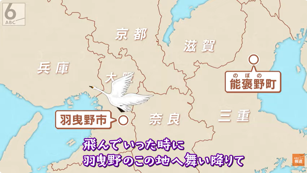 先生によれば、ヤマトタケルの墓は最期の地とされる三重県・能褒野町にあるとのこと。しかし、死後に白鳥となり、故郷である大和に向けて飛んでいったという伝説も。その途中で舞い降りたのが現在の羽曳野で、再び大和へと「羽を曳くように飛び去った」と伝えられていることが、「羽曳野」という地名の由来だそう。