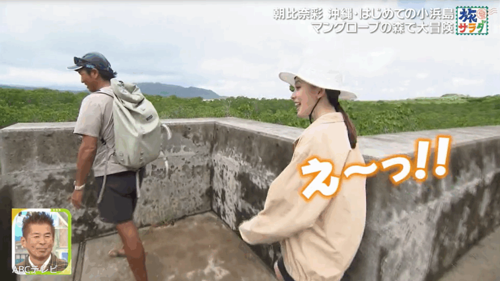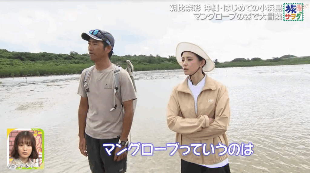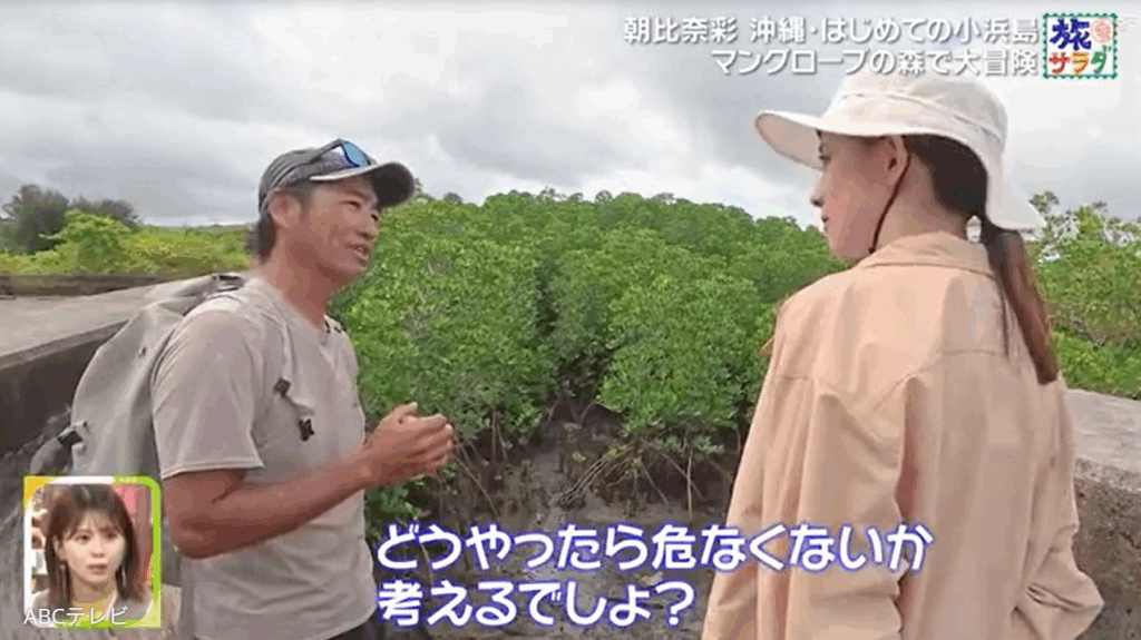 マングローブの森の中は泥だらけで足場が悪く、裸⾜だと危険だが、男性ガイドいわく「怖いから、どうやったら危なくないか考えるでしょ? これがめちゃくちゃいいんですよ!」とのこと。彼に朝比奈は、「思考が変わっている!」と即ツッコみ、のちにスタジオでも、「すっごい変な人でした!」「癖のある……でも、(いい体験をさせてくれて)とっても素敵なかたで!」と振り返った。