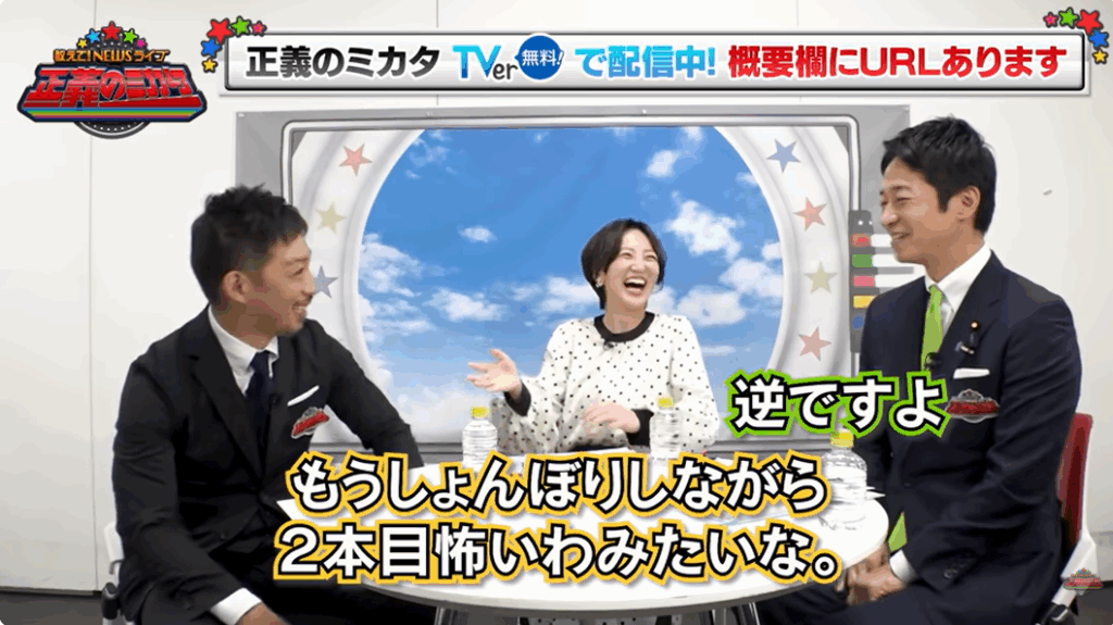 「カメラが回ってないところで藤田さんにしっかり詰められて、もう、しょんぼりしながら2本目怖いわみたいな…(笑)」と口火を切った西田氏。すると維新・藤田氏は「逆ですよ」と、静かに圧のある(?)微笑みを浮かべる。