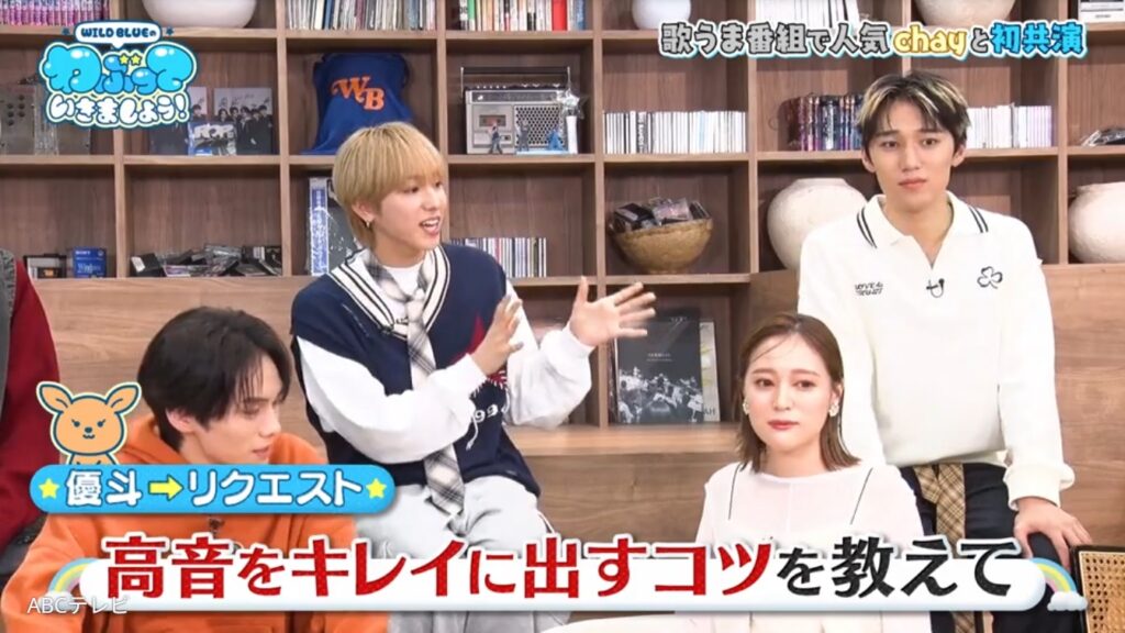 5人組ボーイズグループWILD BLUEの初冠番組『WILD BLUEのわぶっていきましょう!』(ABCテレビ)。11月16日(日)放送回では、前週の続編として初の女性ゲストであるシンガーソングライターのchayとのカラオケ対決後編に挑んだ。