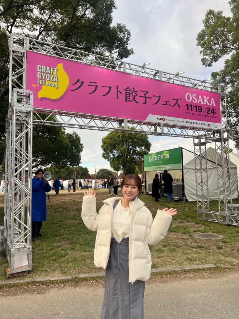 私と故郷の自慢はさておき、今回は「おかえり」中継スタッフの自慢をさせてください。11/19(水)の「おかえり」生中継で訪れたのは大阪市の中心部にある都会のオアシス、鶴見緑地公園。EXPO’90「国際花と緑の博覧会」会場の跡地を再整備した公園で、今は「クラフト餃子フェスOSAKA2025」(~11/24(月)まで)を開催中です。