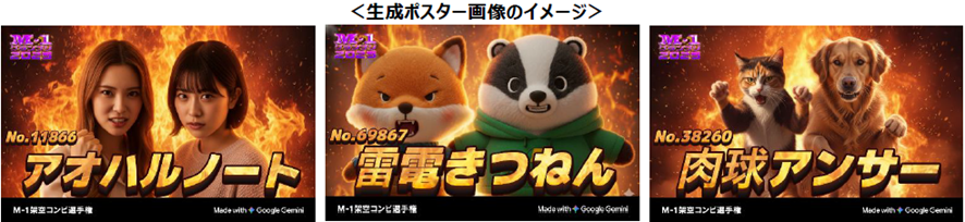 なんと特設ジェネレーターはGoogle のAI、Gemini の全面技術協力によるもので、11月20日(木)より、M-1公式サイトにて公開中!