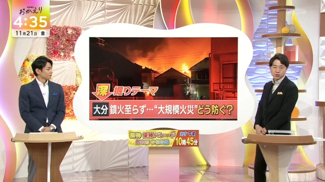 11/21(金)の「newsおかえり」では大分・佐賀関で起きた大規模火災を取り上げ、なぜ延焼が拡大したのか?をお伝えしました。大きな要因として考えられているものが3つあります。最大の要因は“強風”ですが、次に“住宅が密集していたこと”が挙げられています。