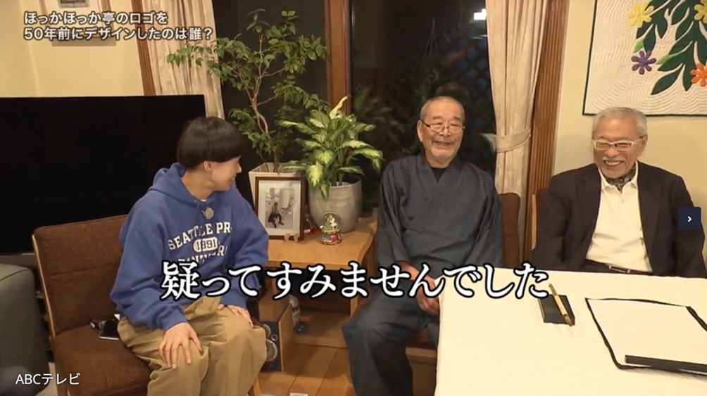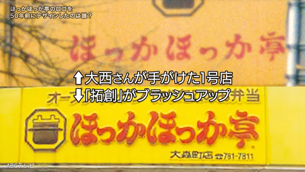 大西さん曰く、約50年前に駅構内でうどん屋さんを営んでいた田渕さんから、新たに立ち上げる弁当屋さんのロゴの相談を受けたという。そこで大西さんは、お弁当から立ち上る湯気のイメージで、「ほっかほっか亭」の文字を書いたと証言し、「拓創」がデザインしたという説をキッパリと否定する。