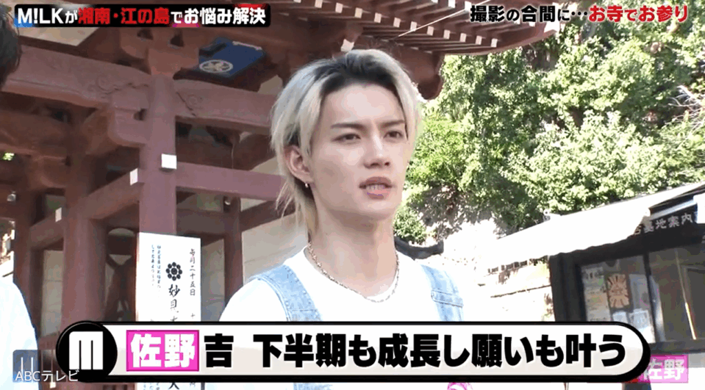 “ビジュイイじゃん”のフレーズでお馴染みの5人組ボーカルダンスユニット・M!LKが、『NHK紅白歌合戦』出場者発表前に、初出場祈願で寺へ。“さのそのコンビ”こと最年長・佐野勇斗と最年少・曽野舜太が鳴らした鐘の音が、グループに幸運を呼び込んだ! しかし、おみくじの結果は悲惨で……!?