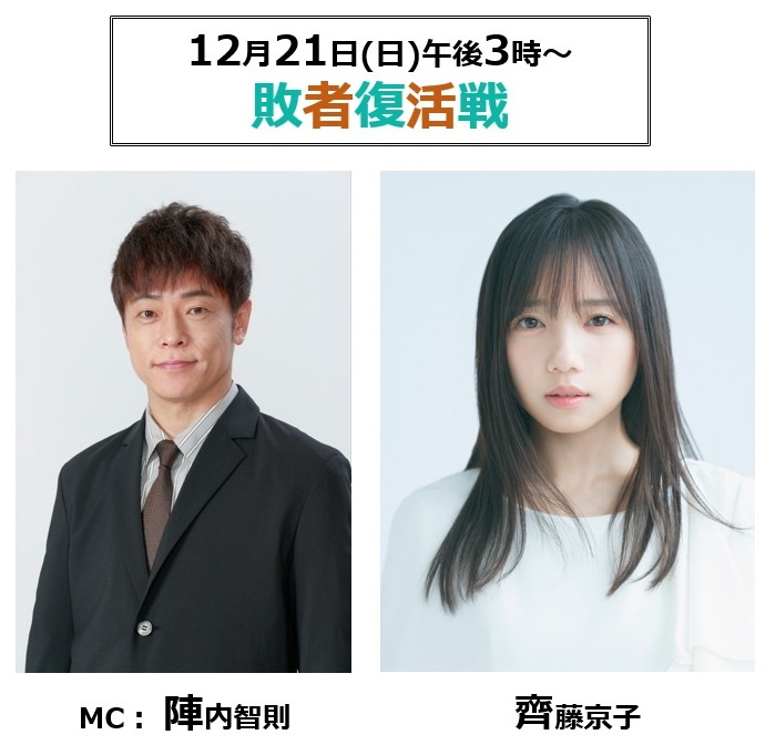 敗者復活戦 12月21日(日)午後3時~よる6時30分