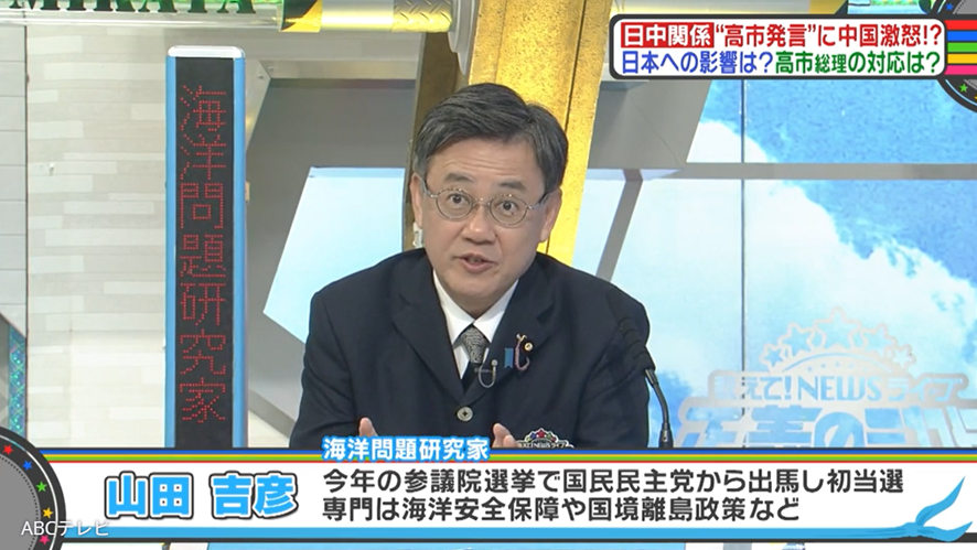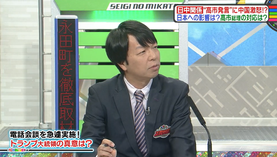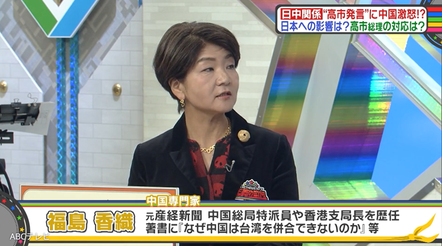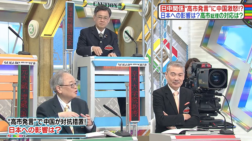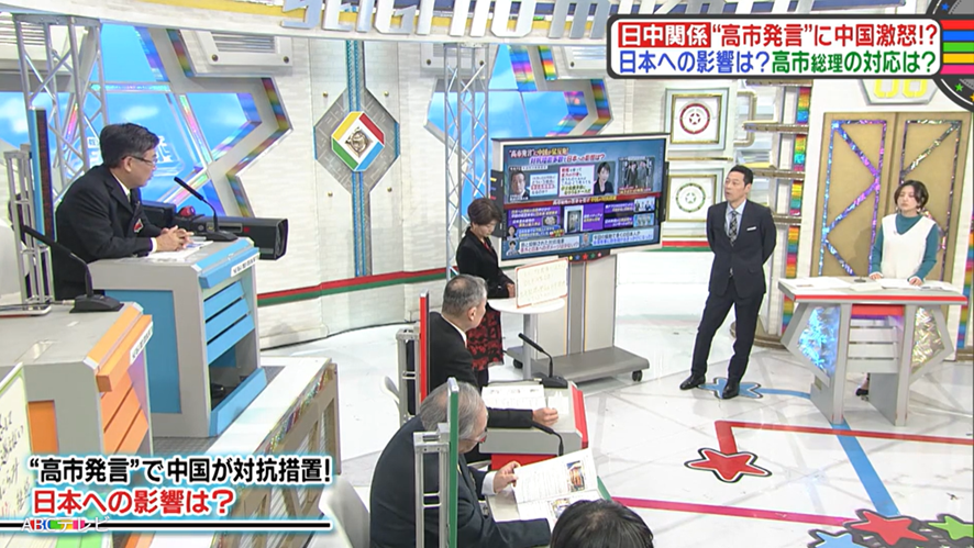 なお、悪化している日中関係の問題は、11月29日に生放送された情報バラエティ番組『教えて!ニュースライブ 正義のミカタ』(ABCテレビ)で取り上げられた。
