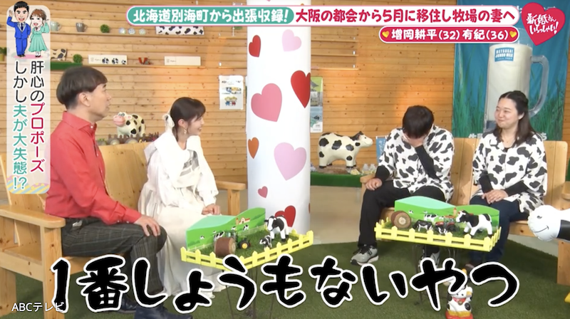 終始、しっかり(ちゃっかり?)者の妻と、大自然に育まれたちょっと天然な夫に、MC藤井隆のツッコみが冴え渡った今回の『新婚さんいらっしゃい!』(ABCテレビ・テレビ朝日系列)。