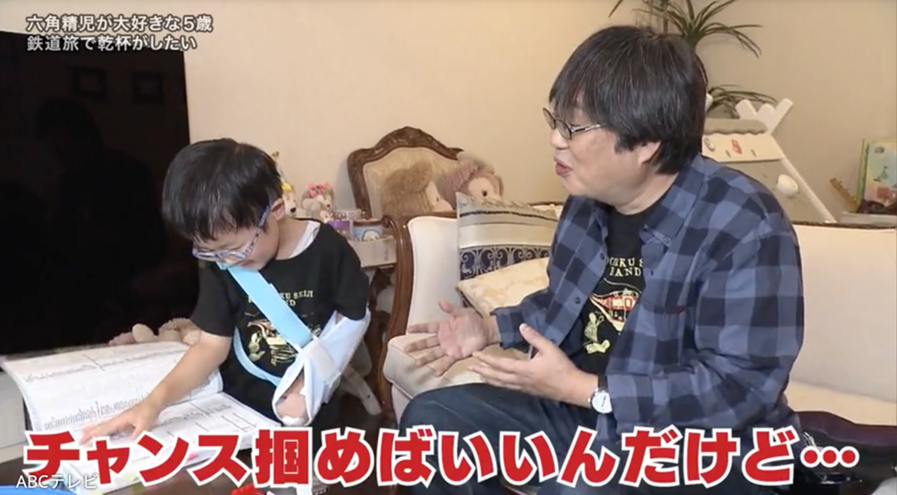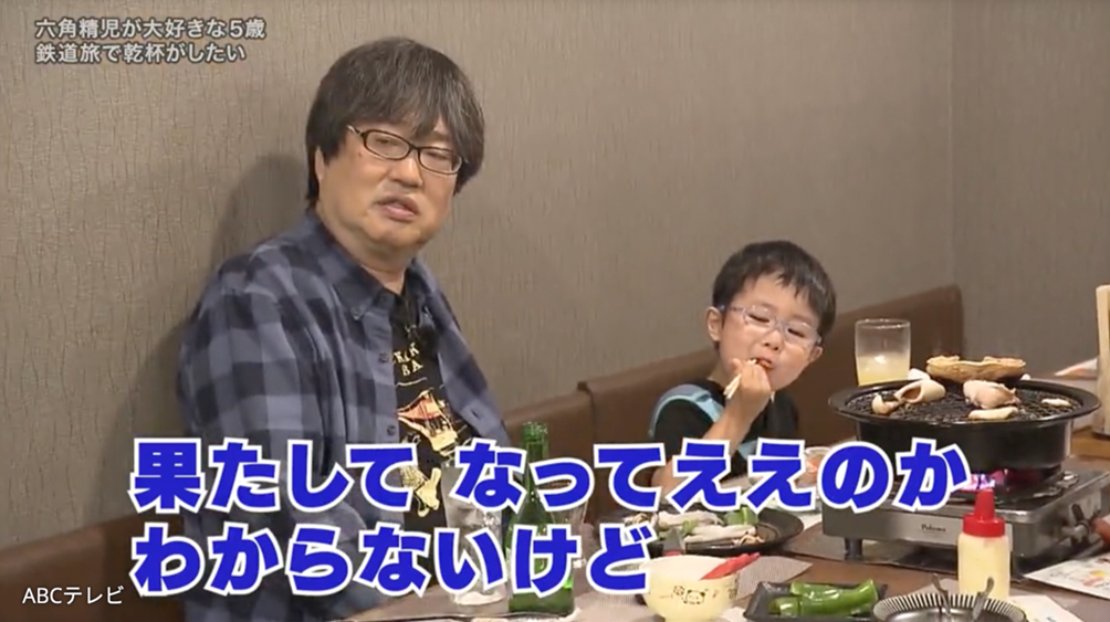 『探偵!ナイトスクープ』(ABCテレビ)に、中国・江蘇省在住の女性(33)から、「5歳の息子の夢を叶えてほしい」という依頼が届く。「六角精児さんと一緒に旅をしたい」「鉄道に乗りながらお酒を飲む六角さんと乾杯をしたい」という実に渋い夢に、スタジオがどよめいた。息子さんは3歳で電車好きになり、俳優の六角精児が鉄道で日本各地を旅する番組「呑み鉄本線・日本旅」(以降「呑み鉄」)をきっかけに、六角の大ファンに。