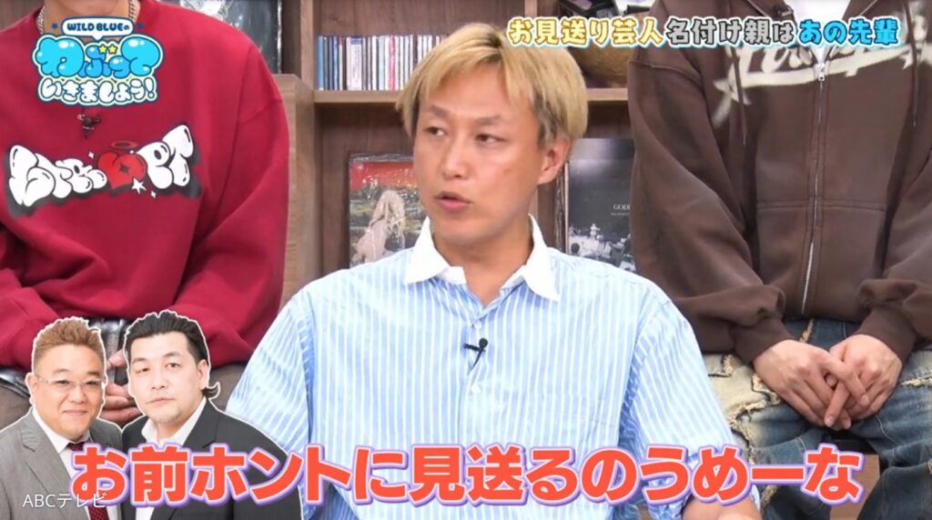 WILD BLUEの宮武颯は、「お見送り芸人しんいち」という芸名の由来を質問。仕事で来阪したサンドウィッチマンを、どんなに疲れていても必ず新幹線のホームまで見送っていた。その徹底した姿勢に感銘を受けたサンドウィッチマンが、自身のブログで「お見送り芸人しんいちっていうやつがいるぞ」と書いたことで、この芸名が誕生したという。東京ホテイソンも「先輩の飲みは絶対に断らない」と証言。しんいちの「後輩力」こそが、彼のアイデンティティを創造していた。