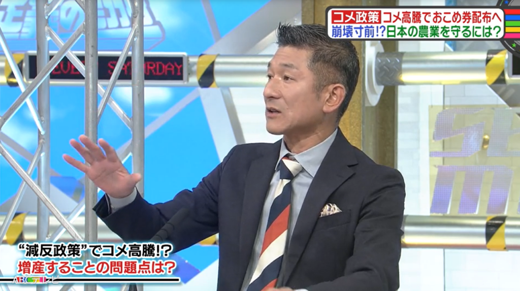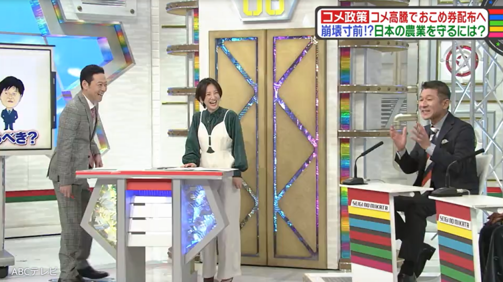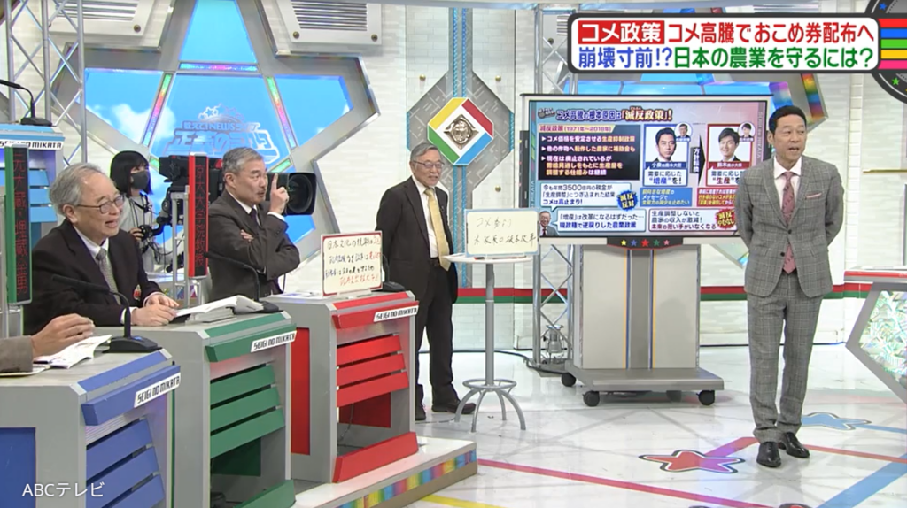 なお、日本の米政策は、12月6日に生放送された情報バラエティ番組『教えて!ニュースライブ 正義のミカタ』(ABCテレビ)で取り上げられた。