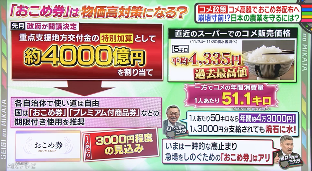 【TVer】おこめ券の配布or備蓄米の放出、令和の米騒動を解決するには結局どちらがベスト? 米の価格は今後安定する? 専門家たちが独自解説