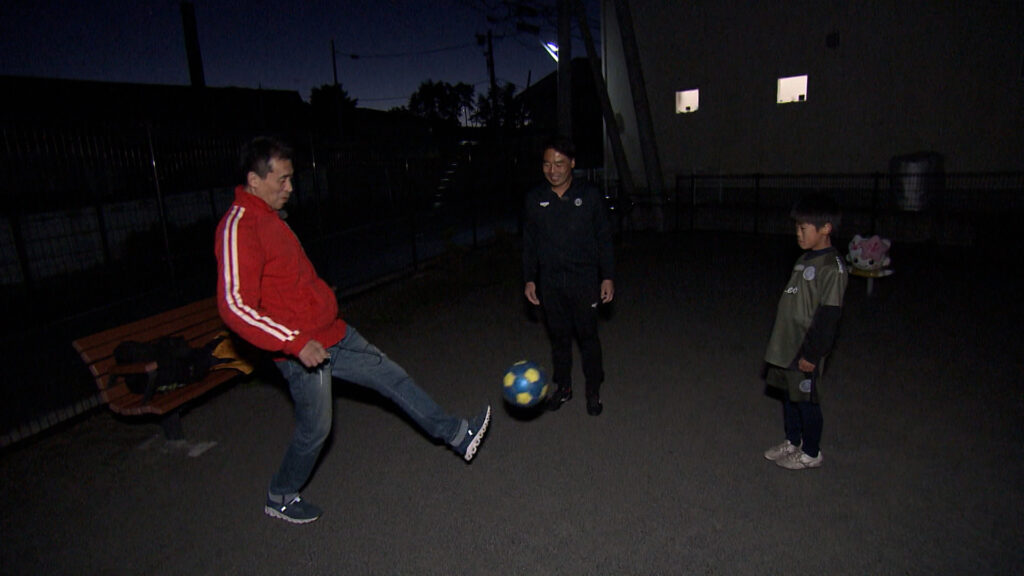 親子で“レジェンド”と呼ぶ、そのおじいさんは元プロサッカー選手か、元オリンピック日本代表か?! そんな中、レジェンドがグラウンドに出現。まずボールの上に乗り、続いて「ちょんちょんリフティング」で歩き始めた。その人は塩田さん(66)と言い、中学はサッカー部だったものの、「ちょんちょんリフティング」は50歳を過ぎて毎朝の散歩で練習を始めたとか。そこで教えを乞うと彼は快諾。「ボールを梅干しだと思って、種を蹴ってごらん」などという独特なレジェンドの教えは、功を奏するか?!