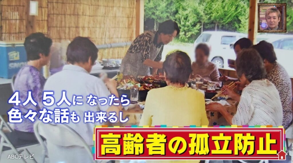 この場所を作ったのは、高齢者の孤立防止のため。「お年寄りは次第に引きこもりがちになる。そういうのを防止するためにちょっと誘うてみる」と、交流の場を作った。人のために動くのが「好きじゃ。ひとつも苦にならん。生きがいだし、健康の元」とご主人はいう。