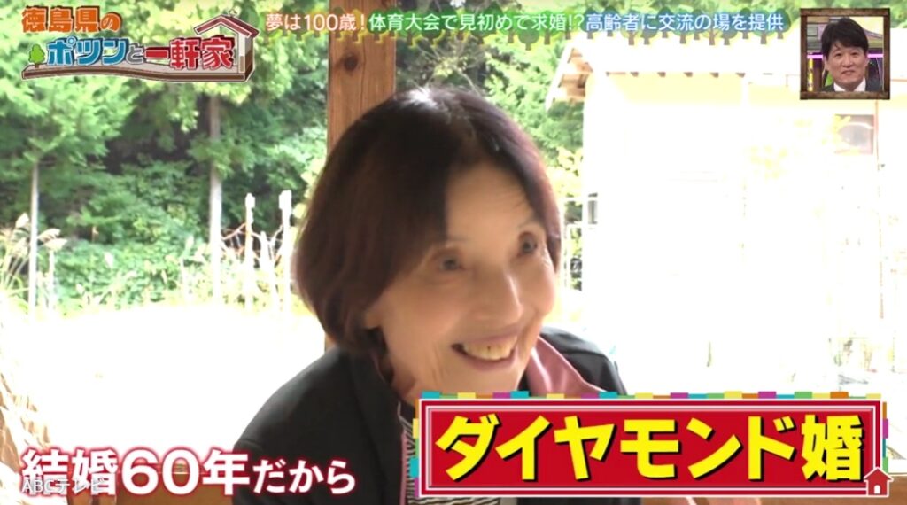結婚は29歳の時。町の体育大会に選手として出場していた妻を見初めて求婚。今は孫やひ孫に恵まれ、孫たちもこの場所を訪れるそう。86歳のご主人の目標は「100歳まで生きること」。元気の秘訣は、食事と毎日1時間半行う運動だといい、腕立て伏せやスクワットやストレッチをして見せてくれた。妻は「あと3年でダイヤモンド婚(60年)。元気で迎えたい」と笑顔を見せる。夫婦はこれまでを振り返り、「いい人生だった。元気で今まで二人でおれるちゅうことは幸せだと思いますわ。夫婦が理解しあって、一緒に話して、一緒に出かけて、一緒に楽しむことが大事」と語った。