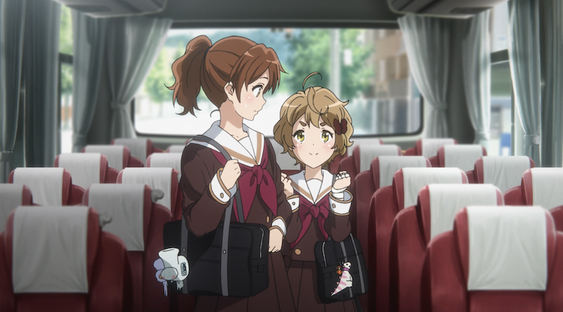 こうしてバスが会場に到着するも、緊張な面持ちでいる久美子(CV:黒沢ともよ)。そこに、いつもポジティブシンキングな緑輝(CV:豊田萌絵)が「いいですか? 失敗したらダメだって思うから、緊張するんです」「私の演奏テクニックを見よ!って思えばいいんです!」と強靭なメンタルを披露!「めちゃくちゃ楽しみなんです!」という自分とは違うタイプの緑輝に触発されたり、同じように緊張している秀一(CV:石谷春貴)とその想いを共有したり。