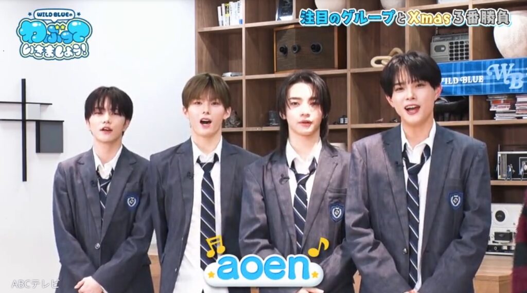 12月14日(日)放送回では、今年6月にデビューを果たした7人組ボーイズグループaoen(アオエン)の優樹、颯太、京助、礼央の4人をゲストに迎えた。