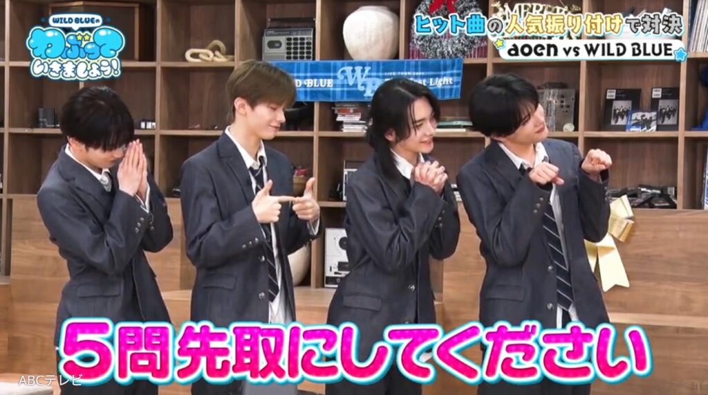 結成1周年を迎えた5人組ボーイズグループWILD BLUEが、エンターテインメント界の著名人をゲストに招き、さらなる飛躍への教訓を学ぶ『WILD BLUEのわぶっていきましょう!』(ABCテレビ)。