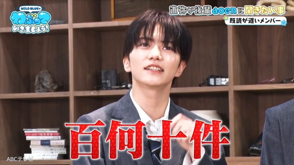 WILD BLUE直弥からは、aoenに「グループLINEの返信が一番遅いのは誰か?」と質問。直弥が礼央だと予想すると、見事に正解。「未読が100件以上」「電話をかけても基本出ない」といった驚きのエピソードも飛び出した。aoenがWILD BLUEの返信が遅い人を山下幸輝と予想すると、こちらも正解。「個人LINEに1週間既読がつかない」という直弥に、「それは直弥だけ」と幸輝がツッコんで爆笑を沸き起こした。