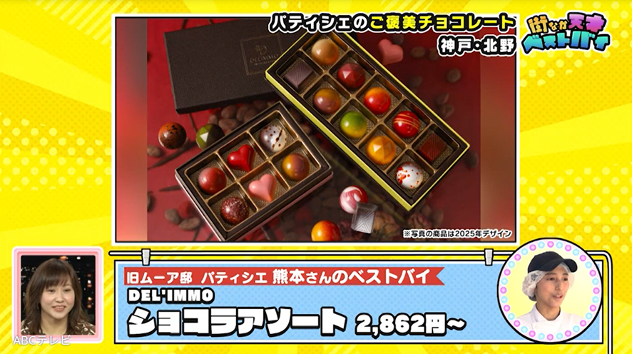 女性パティシエのベストバイは、人気カフェ&パティスリー・DEL‘IMMO(デリーモ)のショコラアソート。宝石箱のように美しいビジュアルをしており、彼女いわく「日本人の方向けと言いますか、甘ったるくなく、組み合わせ方が好きだなと。(パティシエとして)勉強になります!」「頑張ったご褒美にちょっと贅沢して買っています!」とのこと。バレンタインデー頃は、発売から3日で完売するほど人気なんだとか!