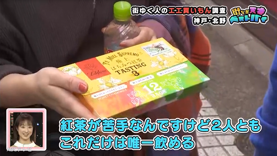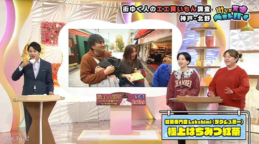 紅茶が大好きなますみは、種類豊富な茶葉が並ぶLakshimiにハイテンション! 相方の竹内知咲とともに極上はちみつ紅茶を試飲し、「優しい甘さ」「お砂糖じゃなく、ちゃんとはちみつの甘いの」「やわらか~い甘さね」などと感動しました。あまりにもおいしかったため、ロケ後に2人はもちろん、番組スタッフも極上はちみつ紅茶を購入したそうです!