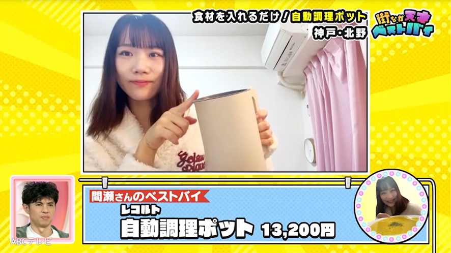 なお、北野エリアにいた人々のベストバイは、情報番組『newsおかえり』(ABCテレビ、毎週月曜~金曜午後3時40分より放送)内の「街なか天才ベストバイ」12月12日放送回で紹介されました。