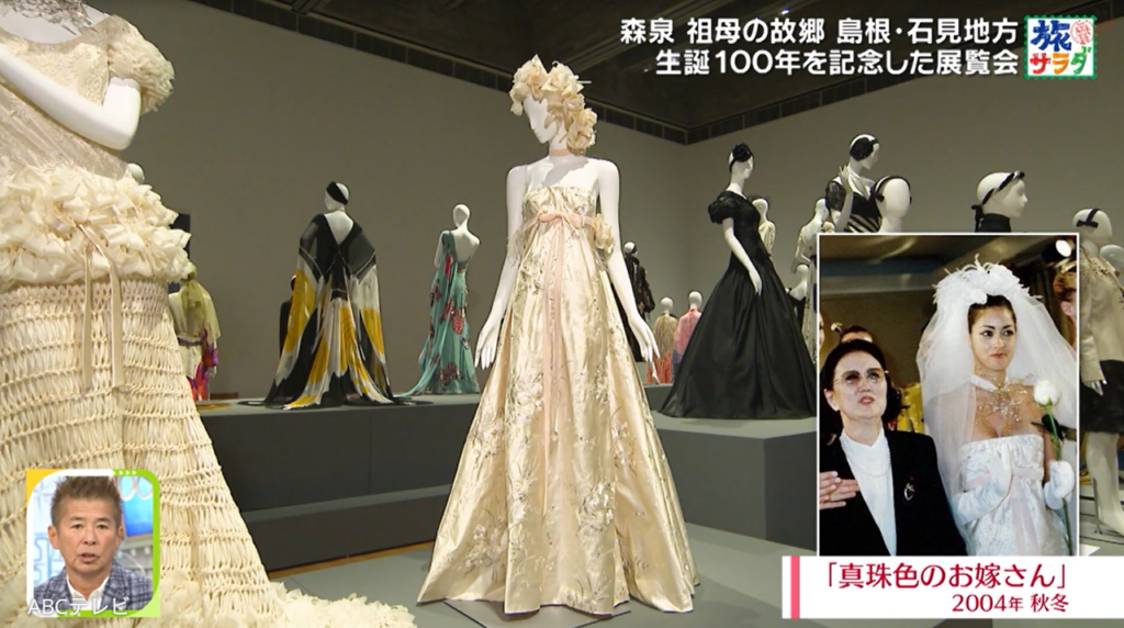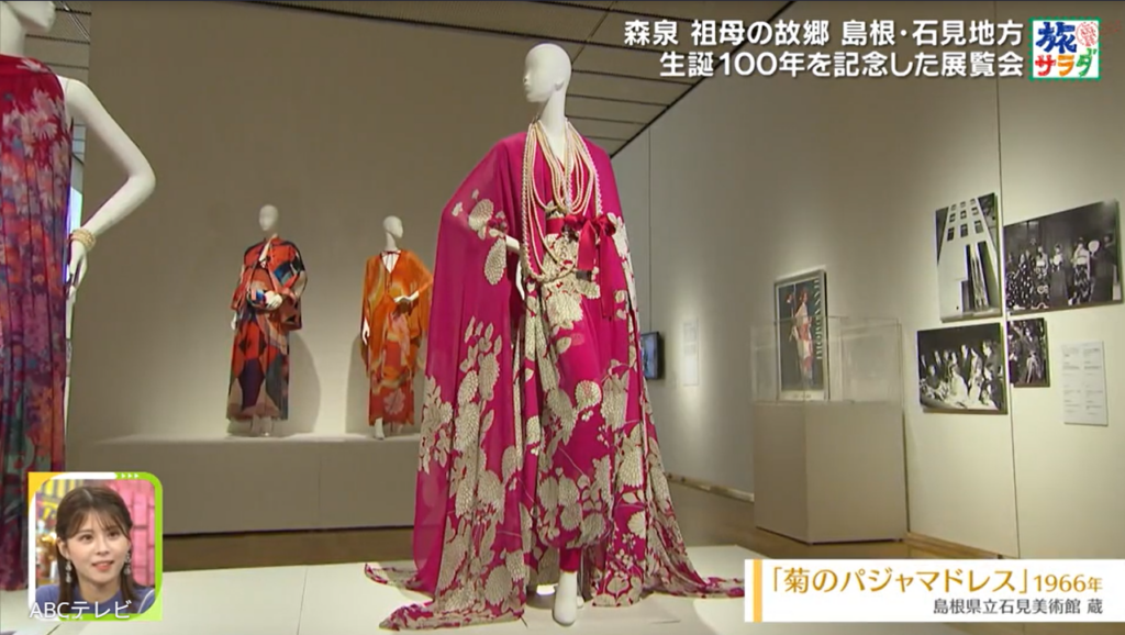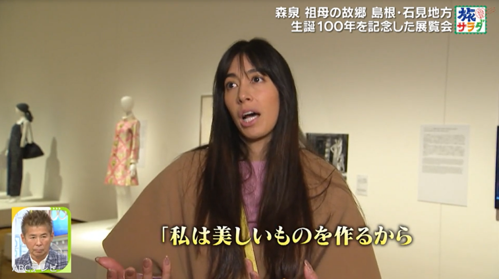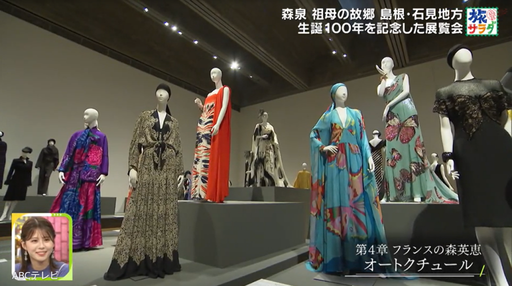 森泉が初めて訪れた島根県の石見地方は、森英恵さんが生まれた場所。中心都市・益⽥市にある島根県⽴⽯⾒美術館では、森英恵さんの⽣誕100年を記念した展覧会が開催され、約400点の衣装や資料が、時代やテーマごとに展示された(12月1日閉幕)。