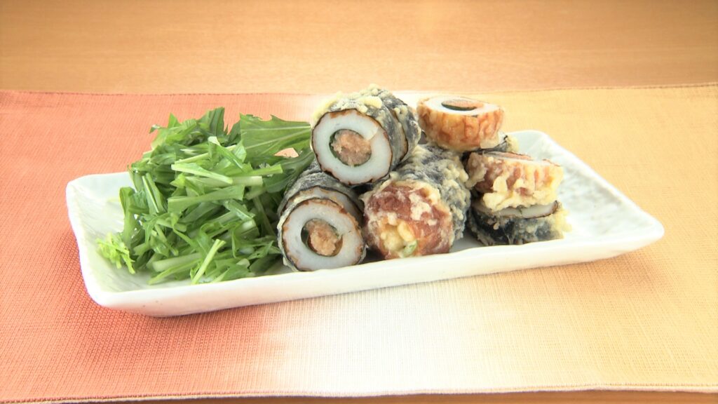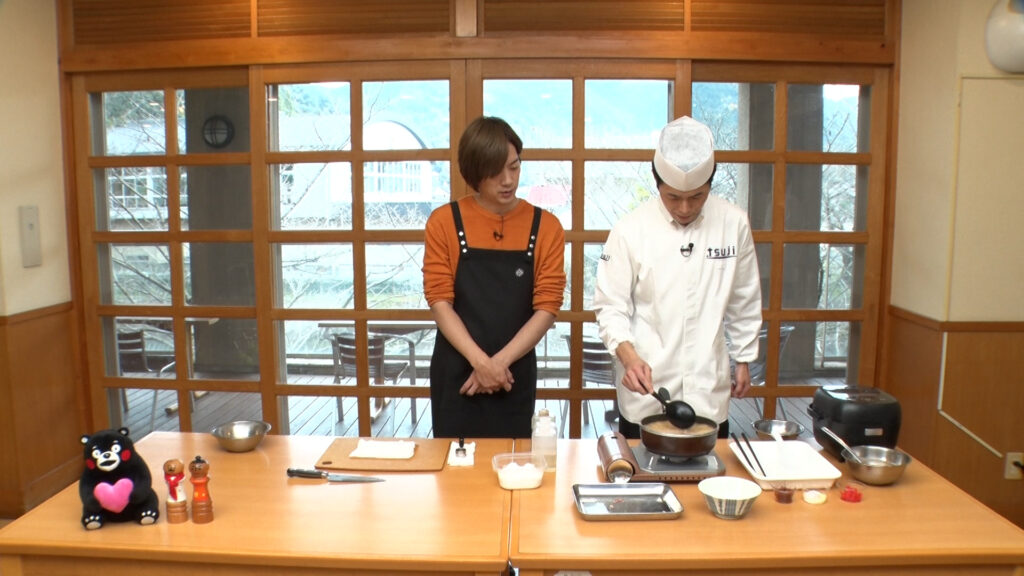 この週は特別企画「出張!DAIGOも台所in八代」。いつものスタジオを飛び出し、熊本県八代市で行った出張ロケの模様をお届けしている。4日目となるこの日は、八代の名産品「日奈久ちくわ」を使った「ちくわと明太子の磯辺揚げ」を辻調理師専門学校の長谷川晃先生から教わった。