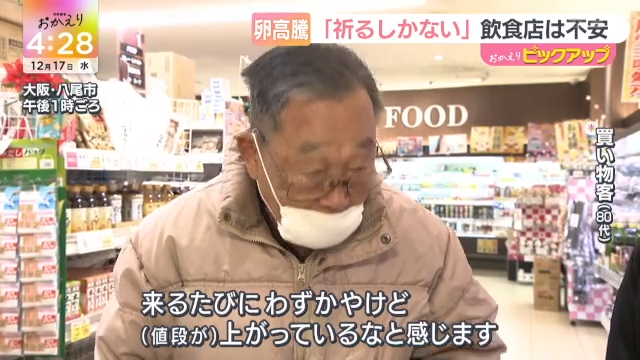 さらに、スーパーの店長さんによると、クリスマスやおせちの準備などで年末に向けて需要が高まるため、今後さらに価格が上がる懸念もあるとのことでした。