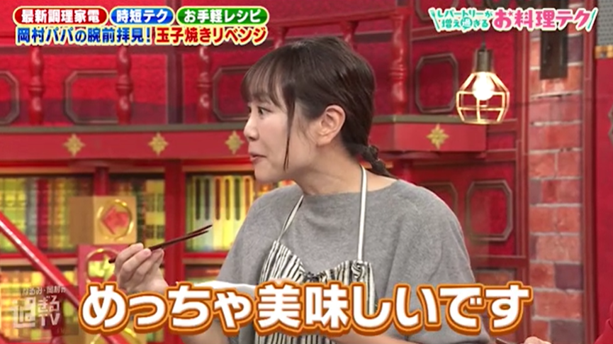 なお、進化した岡村の料理の腕前は、12月15日に放送されたバラエティ番組『なるみ・岡村の過ぎるTV』(ABCテレビ)で明らかになった。同放送回では、料理のレパートリーを増やしたい岡村のために、明日にでも買いたい便利なキッチンアイテムや、ゆりさん直伝の超簡単クリスマスパーティーメニューが紹介された。