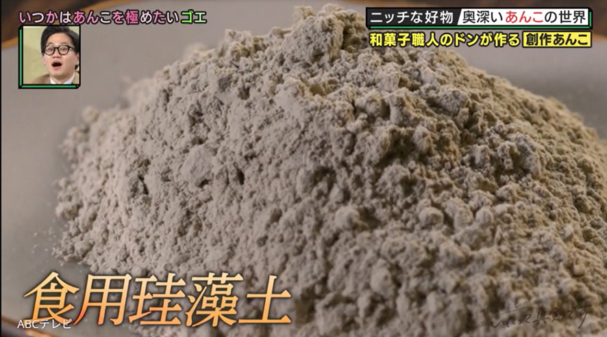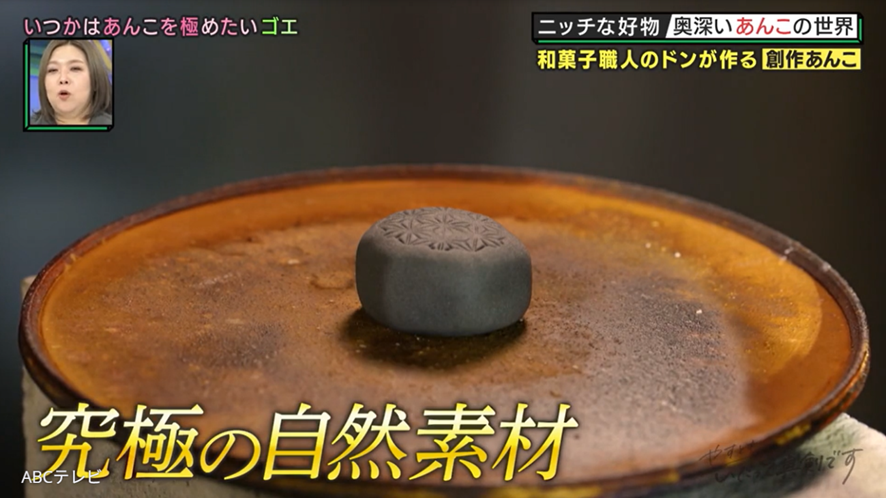 その正体は、ミネラルたっぷりの食用珪藻土を混ぜたあんこを、麻炭が練り込まれた生地で包んだ、真っ黒な見た目の和菓子だ。1個540円の土に浅越は田崎佑一(藤崎マーケット)とともに、「土!?」「今から珪藻土マットを食べるんですか!?」「あんこ好きすぎれば土食べるなり?」などとツッコミまくった。