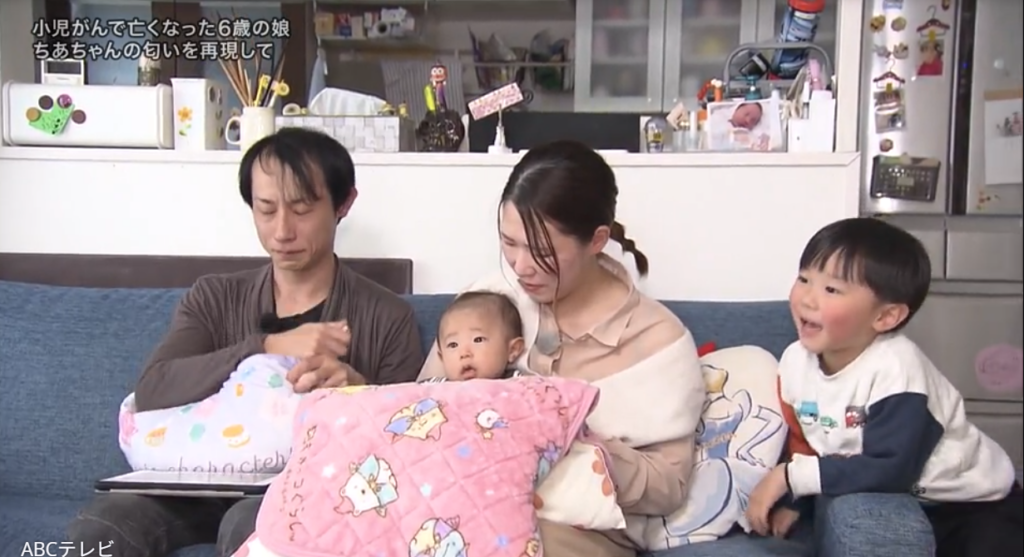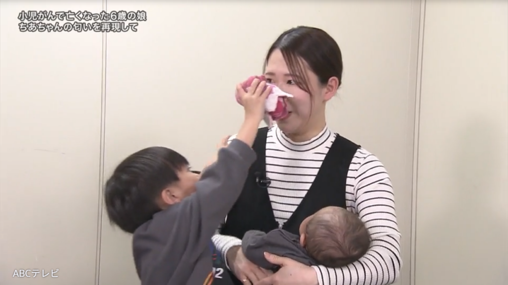 『探偵!ナイトスクープ』(ABCテレビ)に、山口県在住の男性(38)から、娘のちあちゃんに関する依頼が届く。”ちあちゃん”こと娘の「チアキ」は3歳のときに小児がんが見つかり、3年に及ぶ闘病生活を経て6歳で天国へと旅立った。ご両親はちあちゃんの匂いが残っていた枕をビニール袋に入れて保管していたが、2年の歳月によりちあちゃんの匂いが感じ取れなくなってきてしまった…。この夏に次男が生まれ、育児に追われて娘を思う時間が少なくなりそうで寂しいし、何より娘の匂いを忘れてしまうのが怖い。依頼内容は、枕に微かに残っているかもしれないちあちゃんの匂いを再現してほしいというものだ。