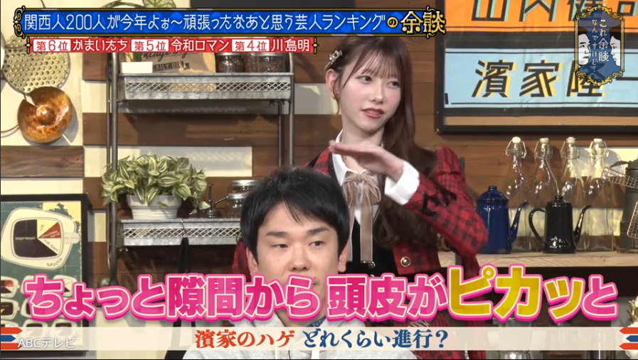 なお、このかまいたち濱家のハゲ隠しエピソードは、12月24日に放送されたバラエティ番組「これ余談なんですけど・・・」で明かされた。