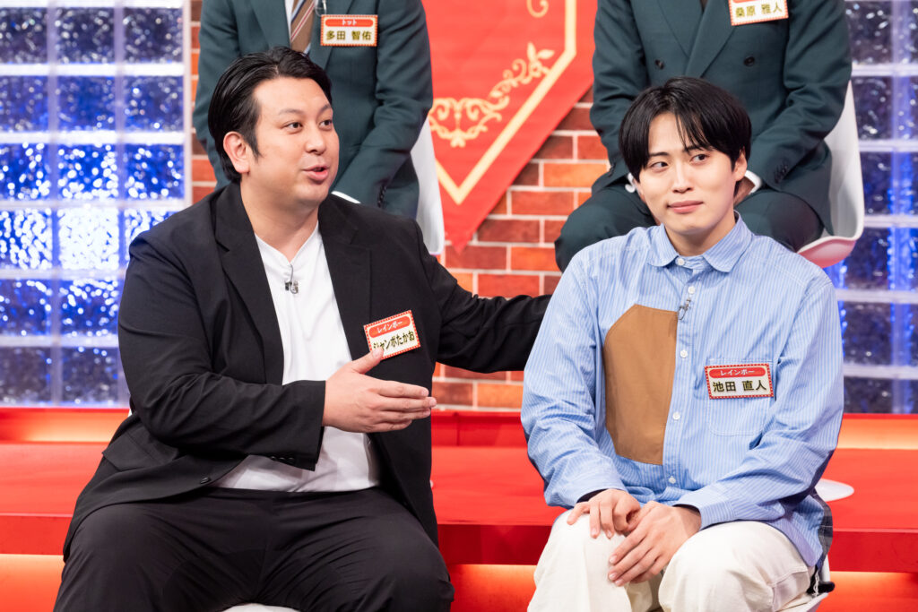 まずは、「キングオブコント2025」決勝戦で3位と大健闘したレインボー。コントで見せる女装姿が“かわいすぎる”と話題の池田直人には、5歳から高校2年まで「売れない子役」だった時代が。そのせいなのか、突然ドラマの主人公のように振る舞いはじめることがあるようで、その理解しがたい行動を相方のジャンボたかおが暴露する。ある日、コンビで街を歩いていたところ、定食屋の前でメニューを見ている老夫婦に遭遇。まったく面識のない赤の他人にもかかわらず、池田が突然「なぁに食〜べるん?」と大声で話しかけ、これに度肝を抜かれた老夫婦が「“逃げよう!”って小走りで逃げていった」という。「そりゃびっくりするわ!」と驚きながらも大笑いするカウスに池田が打ち明けた、どうしても話しかけたかった理由とは!?