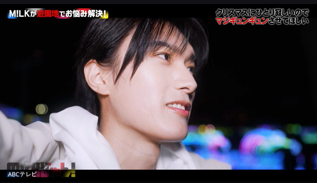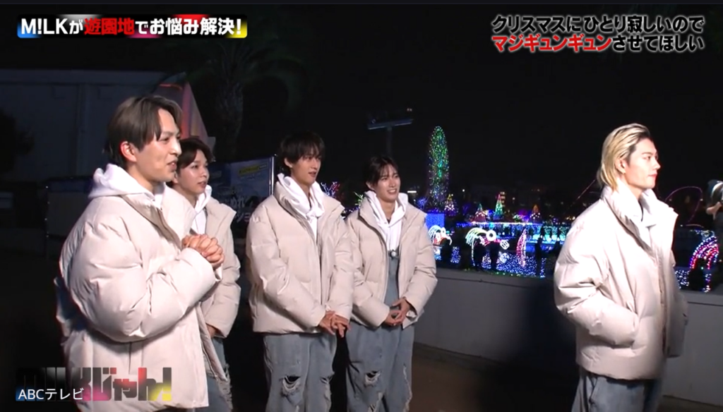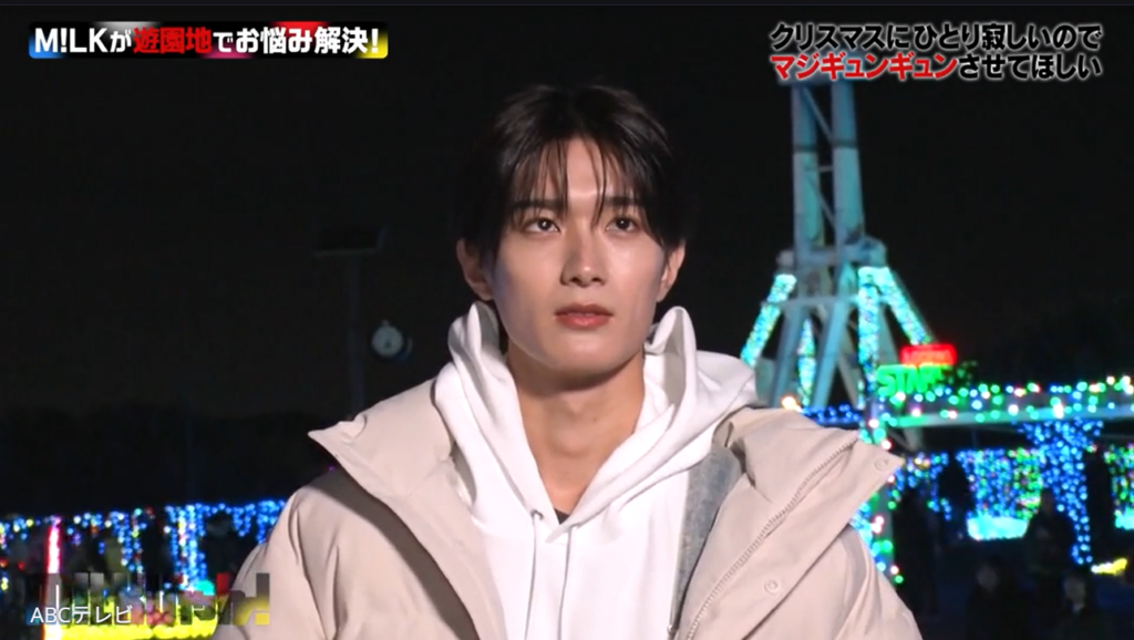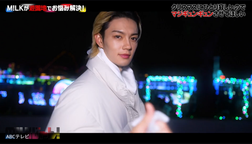 イルミネーションがきらめく夜の遊園地で、「クリスマスに1人寂しいので、マジぎゅんぎゅんさせてほしい」というリクエストを視聴者からもらったM!LK。そこで、俳優としてドラマや映画で活躍している佐野と山中が、お題をもとに全⼒でリクエストに応えることに!