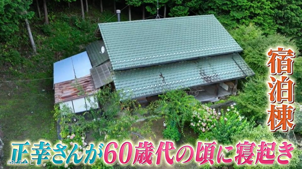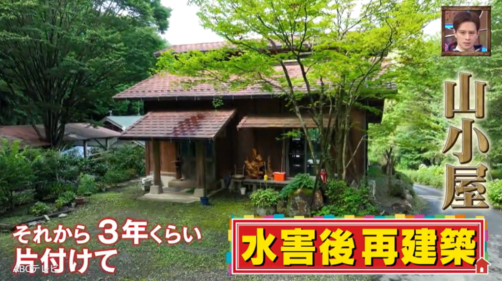 しかし2011年、台風による豪雨が鉄砲水となって山を襲い、山小屋を含む建物3棟が流失。ご主人は3年もの歳月をかけて瓦礫を片付け更地に戻し、3棟の再建をはじめて、4年前に現在のポツンと一軒家が完成した。