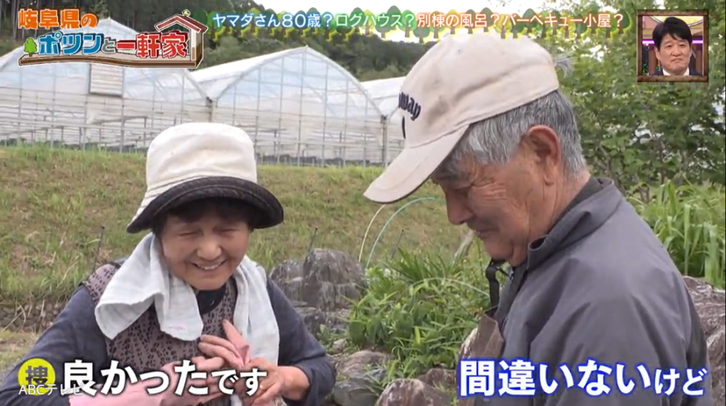 まず捜索隊が辿りついたのは、岐阜県山中の“ポツンと一軒家”。最寄りの集落で手がかりを得て目的地へ向かうと、細い林道に「立入禁止」の看板が。どうやらこの先は私有地のようで、捜索隊はその入口を通り過ぎ、先の集落にあるカフェを目指した。そこは“ポツンと一軒家”家主の家族が経営している店だという。カフェの隣で庭木の手入れをしているご夫婦に声をかけたところ、なんと“ポツンと一軒家”のご主人(83歳)と妻(80歳)だった! 捜索隊は、2人に案内されて目的地へ向かった。