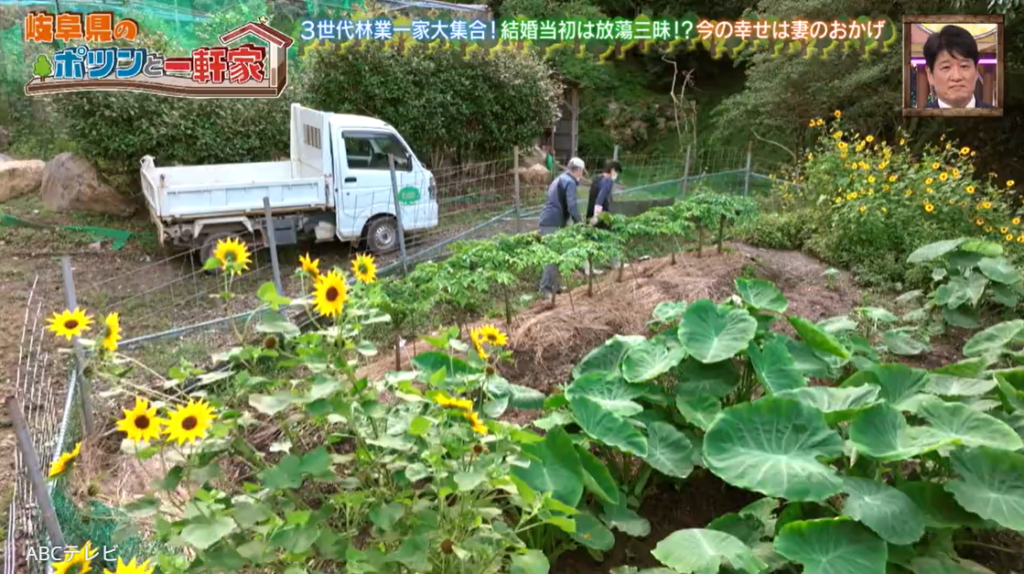 山をとことん楽しんでいるご主人は、農業にも稼業の経験を活かしていた。一般的にはパイプを使い横に栽培する自然薯(じねんじょ)を自然に近い縦に伸ばせるようにと、4tトラックの荷台を再利用して土を盛った。そうすることで粘り気が強く風味豊かな自然薯が育つという。掘り出すときには仕事で使う重機で荷台を持ち上げる。こんな栽培ができるのも、林業を手がけるご主人ならでは。なんと毎年550本を栽培。販売目的ではなく、社員やお世話になった人たち100人に配るという。