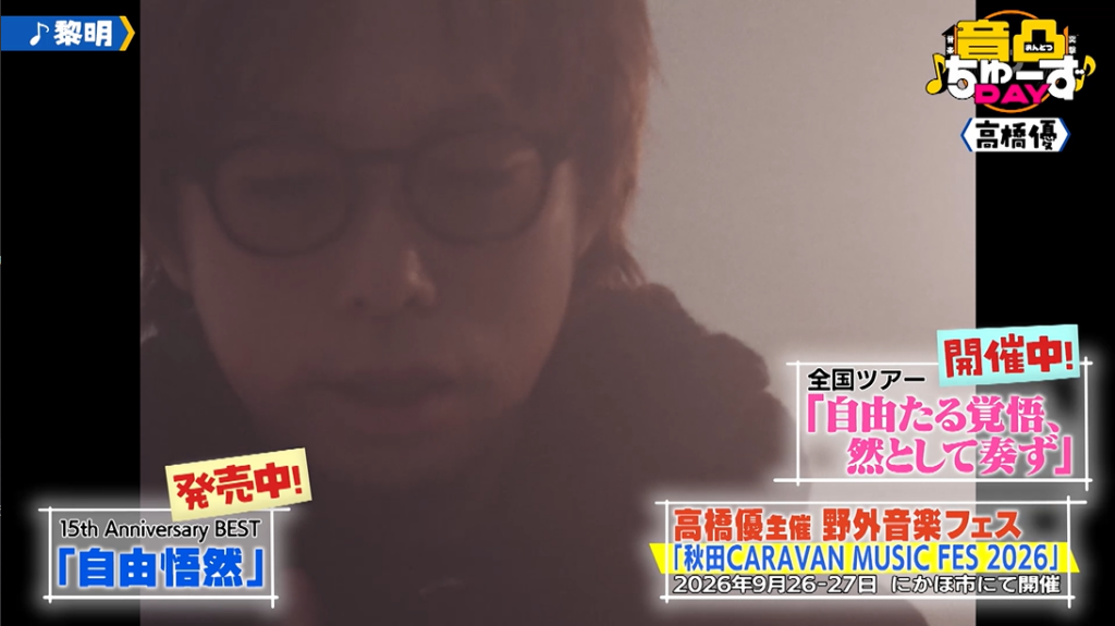 2026年最初の音凸ゲストは、メジャーデビュー15周年を迎え、ベストアルバム「自由悟然」をリリースした高橋優さん。現在、全国28か所を巡るツアーを敢行中! 9月には地元・秋田での野外音楽フェス「秋田CARAVAN MUSIC FES 2026」を主催します。
