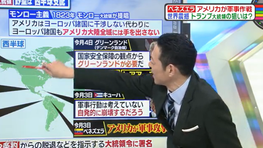 なお、トランプ政権のベネズエラ軍事作戦は、1月10日に生放送された情報バラエティ番組『教えて!ニュースライブ 正義のミカタ』(ABCテレビ)で取り上げられた。