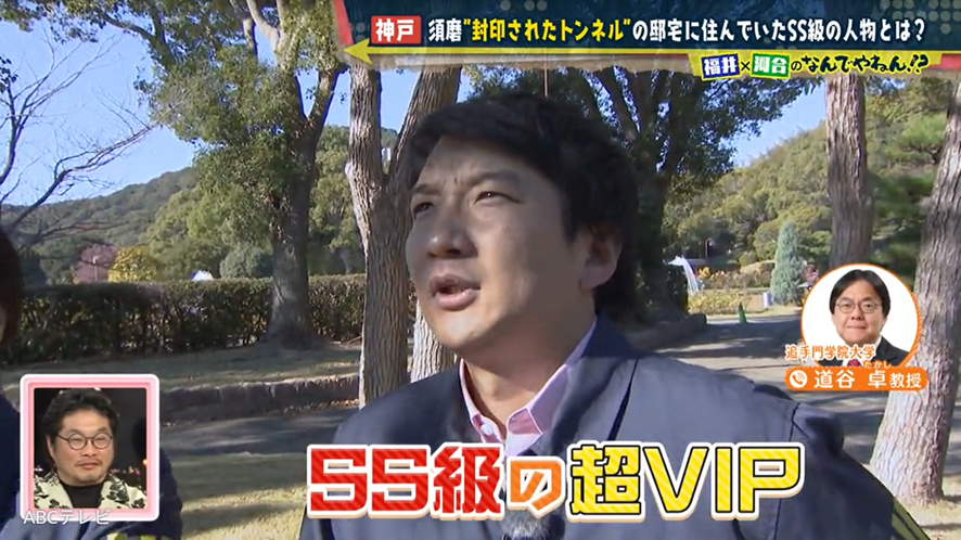兵庫の歴史に詳しい追手門学院大学の道谷卓先生によると須磨周辺は、「明治以降に政財界の重鎮、いわゆるVIPと呼ばれるような人達が多くの別荘や本宅などを構えた」場所。封印されたトンネルがある場所は、元々「大正時代のある人物の邸宅」だったそうで、トンネルは「邸宅のいわば通用口」だという。その人物は「神戸のみならず、日本の近代化に大きな役割を果たしたSS級の超VIP」だが、「このことは神戸の人でもあまり知らない人が多い」そうだ。