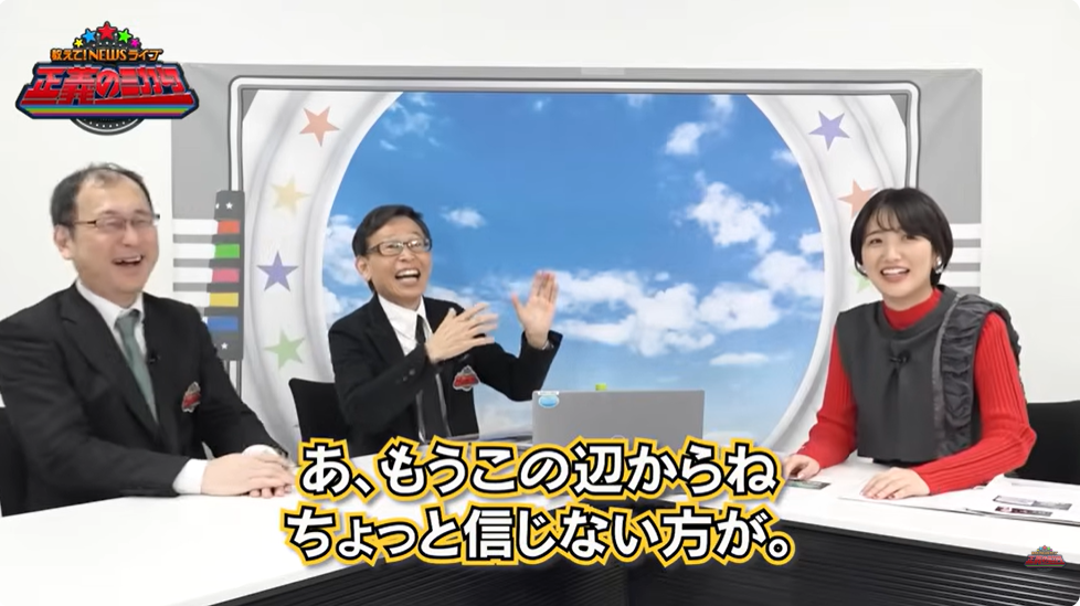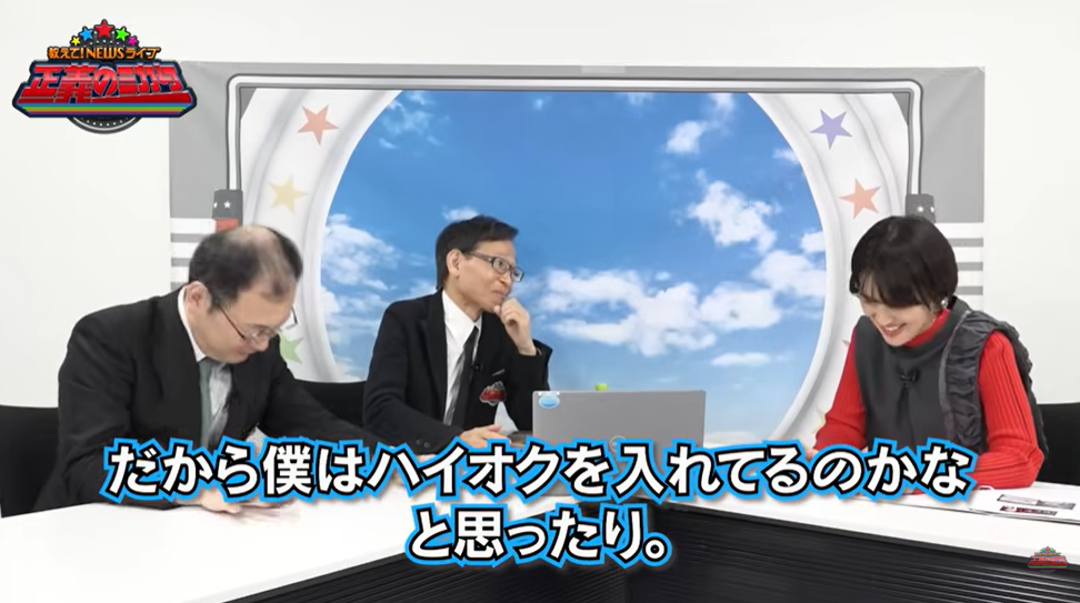 中村氏はさらに「でも燃料がいるでしょ。だから僕はハイオクを入れてるのかなと思ったり」と続け、両隣の近藤氏&東アナは思わず脱力…。