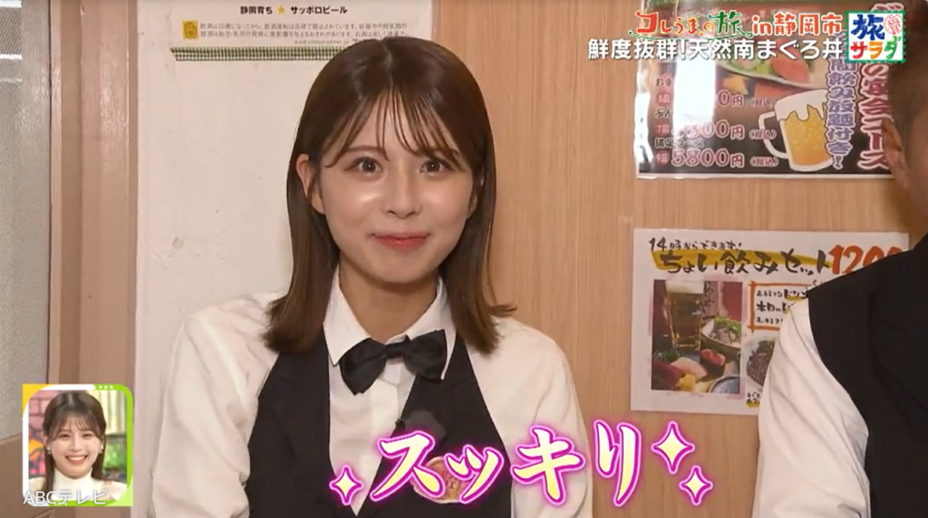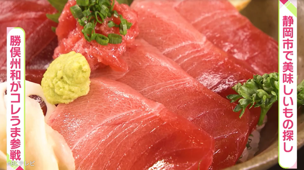 勝俣が張り切って地元民に聞き込み、取材交渉してたどり着いたのは、鮮度抜群のまぐろ丼が味わえる「まぐろ丼 ぶんた」だ。2026年最初の放送ということで、大仁田アナがまず注文したのは、名物のまぐろ……ではなく、静岡の地酒・開運!