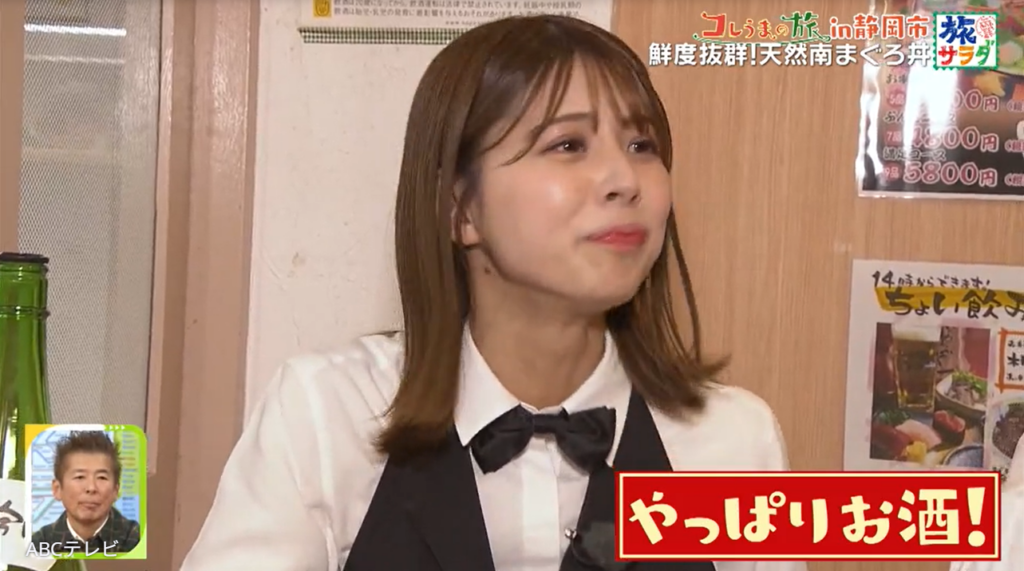 女優デビューする大仁田美咲アナ、『旅サラダ』特別助っ人とおそろコーデで日本酒をグビグビ 視聴者「世界一かわいい」「食リポは芸能界1」