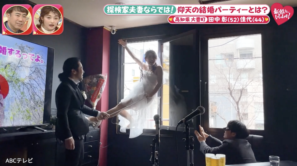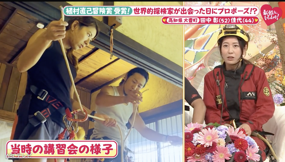 1月11日放送の『新婚さんいらっしゃい!』は、世界で活躍する探検家ご夫妻が登場。淡路島出身の夫は数々の険しい渓谷を制覇してきた、キャニオニング(渓谷下り)の専門家、田中彰(52)さん。2023年には、標高7,000m級の山々に囲まれたヒマラヤの“悪魔の谷”セティゴルジュを人類で初めて完全踏破! その功績が認められ、探検家の最大の名誉である『植村直己冒険賞』を受賞した。