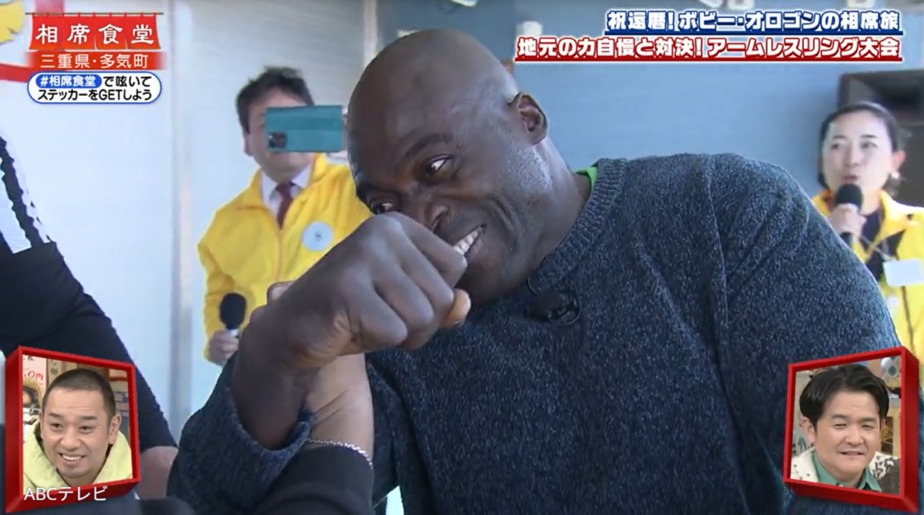 【TVer】地元民からまさかのクレーム! アームレスリング大会を荒らしまくった60歳手前ボビー・オロゴン、“最強の⻤”に退治される!?