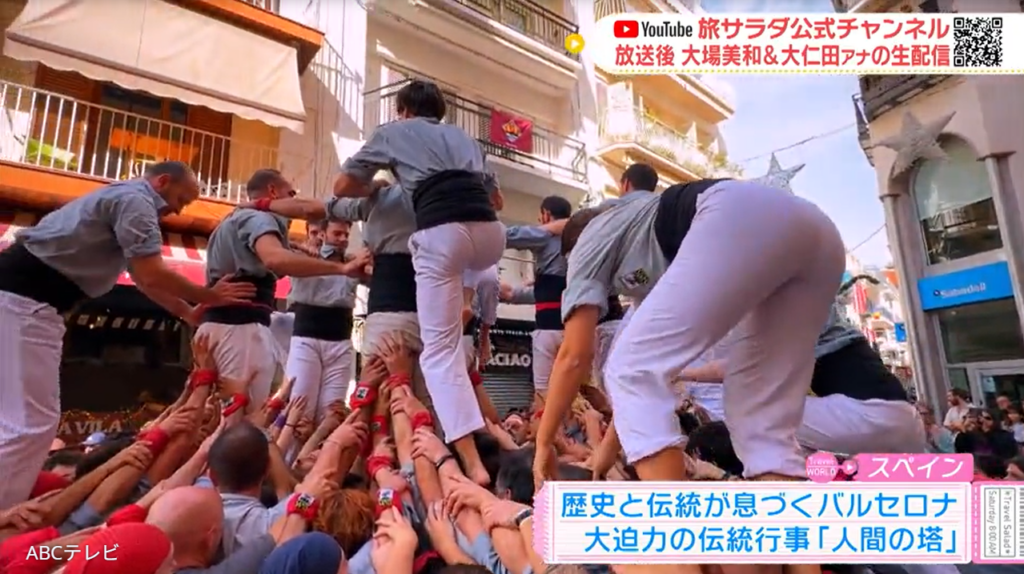 なお、人間の塔のVTRは、1月17日に生放送された『朝だ!生です旅サラダ』で公開された。圧巻の人間の塔に、スタジオ一同はもちろん視聴者も大興奮! X上には、「こわい~!! 子どもたちすごい!!!」「スペインの人間の塔すばらしい、、いろんなタイプがあるのか!」「人間の塔思ったよりもめっちゃ高くて思わず声を出してしまった」「なくなりつつある組体操思い出すけどこう街中でされると圧巻だ」といった声が続出した。