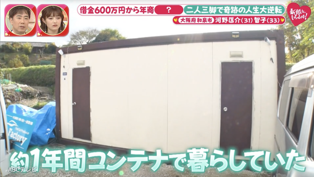 結婚するまでの1年間、ふたりが暮らした家は、なんと、中古車事業を行う敷地内の“コンテナ”だった!! 知人に600万円をだまし取られ、残されたのは、事業所のコンテナひとつだったのだ……。