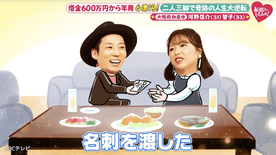 出会いは、心斎橋で開催された参加費3万円の『社長だけが100人集まる飲み会』。当時、銀行員だったしっかりものの妻は、高校生の時から「玉の輿に乗る」ことを夢見ていた。そして、夢を叶えるべくそのパーティーに参加したのだ。